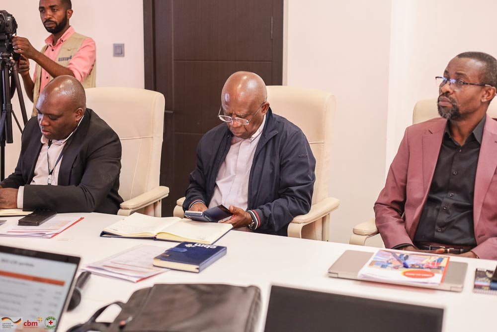 La diversité des participants témoignait de l'ampleur et de l'importance du projet. Étaient présents le Directeur Pays de CBM, le staff CBM de Goma, les membres du comité de direction du BDOM Bukavu, les membres de l'équipe de mise en œuvre GFFO BDOM, ainsi que les représentants des autorités sanitaires provinciales : le chef de division provinciale de la santé, le médecin coordonnateur provincial des programmes santé mentale, réadaptation et santé de la reproduction, et le médecin inspecteur provincial de la santé.